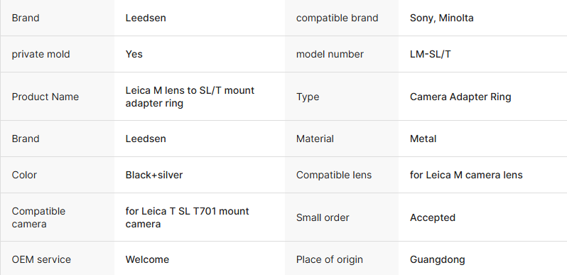 To help distributors escape the price war of generic products, Leedsen invested resources in developing this Private Mold product. Its unique zebra-striped silver adjustment ring creates a striking visual contrast against the black body (Black + Silver), providing not only a non-slip grip but also perfectly complementing the industrial design style of Leica cameras. As a custom camera lens adapter manufacturer with independent R&D capabilities, we control design patents and mold precision from the source, providing you with differentiated products that offer unique selling points and higher premium potential.